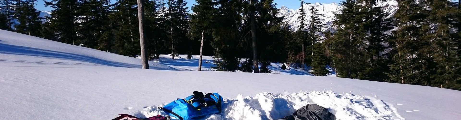 Die Schneehöhe am Biwakplatz auf 1200m betrug diesmal 225cm (vor zwei Jahren an der selben Stelle 100cm).