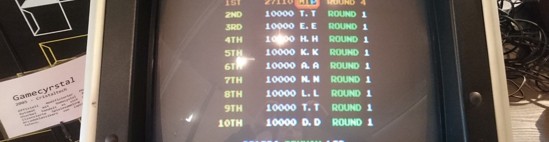 Ghouls ’n Ghosts von 1988, der Nachfolger von Ghosts ’n Goblins. Gespielt auf einem Gamecristal von Cristaltec, 2005, in einem modifizierten Photo Play Automat.